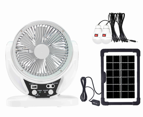 Hot Selling USB Charging LED Table Fan with Solar Panel Multi-Function Desktop Wind Two Speed Options Large Battery Powered